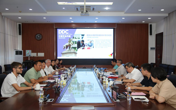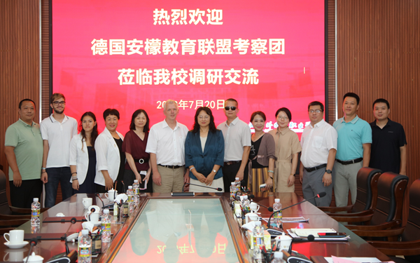 时秀梅代表学校欢迎德国安檬教育联盟考察团来校访问交流,并从学校历史沿革、发展方向、人才培养方向和国际交流合作等方面简要介绍了学校基本情况。