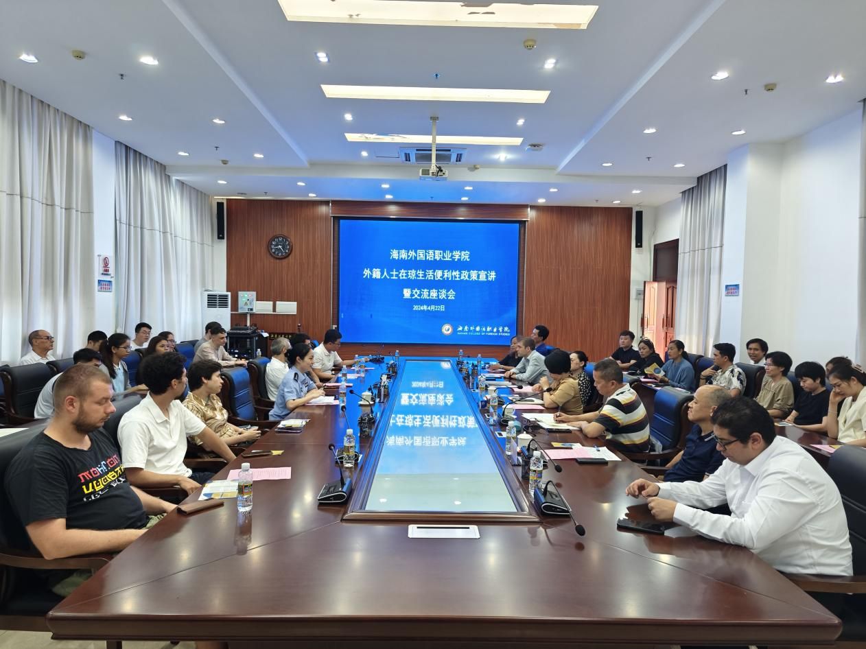4月23日,开云官网召开外籍人士在琼生活便利性政策宣讲暨座谈交流会,邀请文昌市公安局出入境管理大队副队长邓小果到校宣讲。校党委委员、副校长、研究员邓颖颖出席会议。