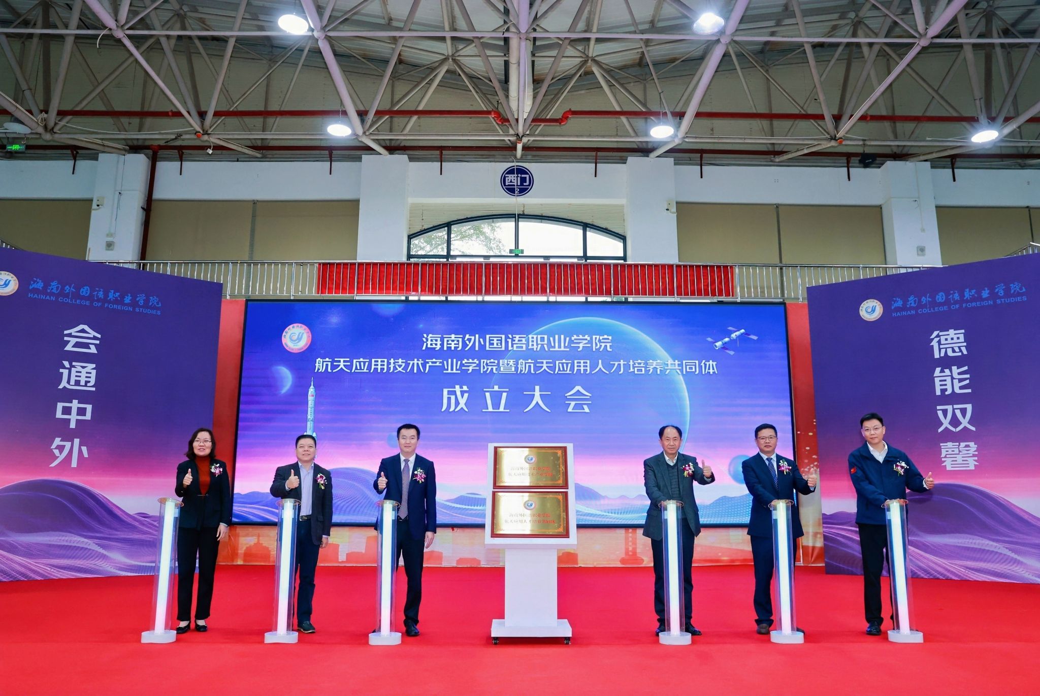 航天应用技术产业学院暨航天应用人才培养共同体成立后,将立足海南自贸港建设,服务国家航天强国战略,充分发挥文昌航天城区位优势和航天产业集聚效应,以“产教融合、协同创新、国际视野、服务地方”为办学理念,推动航天旅游、航天应用技术、航天商务(直播)、航天语言服务等多方向的协同发展,培养适应航天应用产业需求、具备扎实航天专业知识、精通多门外语且熟悉国际商务与文化交流规则的高素质技术技能人才,打造集人才培养、技术创新、社会服务、国际合作于一体的航天应用技术人才培养高地和科技创新基地,推动航天应用技术的创新与应用,助力地方经济发展和航天产业的国际化进程,为航天事业发展和海南自贸港建设提供强有力的人才保障和智力支持。