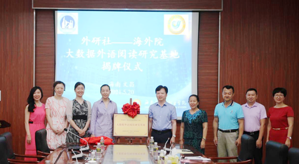 最后,杨学前副院长、姚虹总经理共同为“外研社—开云kaiyun登录入口大数据外语阅读研究基地”揭牌,双方代表合影留念。