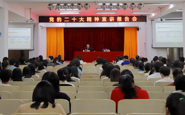 学校全体中层干部、科级干部、各党支部书记、教师党员代表及学生代表共约200余人参加宣讲报告会。
