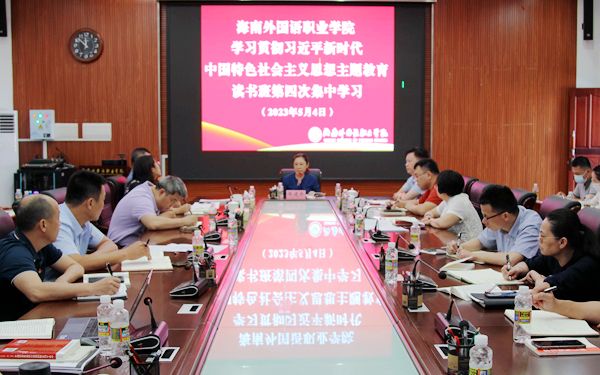 在为期7天的主题教育读书班中,学校党委领导班子成员紧扣读原著、学原文、悟原理要求,深入学习领会党的创新理论的科学体系、精髓要义、实践要求,围绕学习内容谈认识、讲体会,讨论破解难题、推进工作的思路和方案,就如何培养海南全面深化改革开放和中国特色自由贸易港建设需要的人才这一重大课题,查找制约学校高质量发展的根本性、全局性、战略性问题,提出了深化“三全育人”综合改革、小语种专业人才培养等重点领域7个调研专题,梳理出9项“我为师生办实事”任务事项,47项推动发展改革重点任务清单,切实把学习成果转化为破解发展难题的新思路、新举措、新办法。