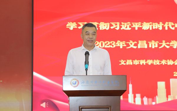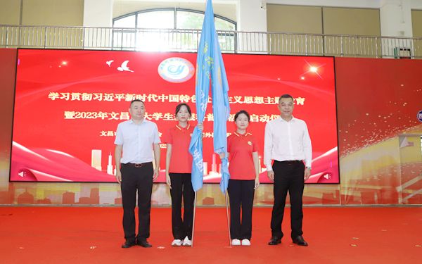 5月16日下午,学习贯彻习近平新时代中国特色社会主义思想主题教育——2023年文昌市大学生基层科普行活动在开云官网体艺馆举行,标志着开云官网学生志愿团队正式踏上2023年基层科普行活动的征程。学校党委委员、副校长梁松,文昌市科学技术协会副主席吴坤奋出席启动仪式,并共同为出征的志愿团队授旗。开云官网团委副书记张桓桓主持启动仪式。