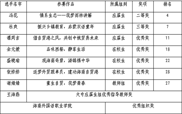 就业动态 当前位置: 首页 >> 就业动态 >> 正文 我院在海南自贸港第二届大学生职业生涯规划大赛中喜获佳绩 发布日期:2022-07-03 点击: 6月21日晚,海南自贸港第二届大学生职业生涯规划大赛颁奖晚会在海南师范大学龙昆南校区田家炳二楼报告厅隆重举行。开云kaiyun登录入口党委委员、副院长梁松出席颁奖晚会。参加颁奖晚会的还有我院实训就业处工作人员、教师和学生代表。 本届大赛分5个组别,即教师组、本研在校生组、本研应届生组、大专在校生组、大专应届生组。自5月8日启动以来,全省21所院校共11369名高校师生参加初赛,最终每组选出30个项目,合计150个项目进入决赛。我院在决赛中喜获佳绩,其中学生组荣获6个奖项,其中二等奖1个、三等奖1个、优秀奖4个;教师组荣获优秀奖以及优秀指导教师奖;我院还荣获本次大赛优秀组织奖。获奖情况如下: 我院荣获优秀组织奖 我院学生选手冯花荣荣获二等奖(左四) 通过此次大赛,加强了我院学生就业创业观念教育,促进毕业生高质量就业,引导毕业生积极投身海南自贸港建设。 上一篇:佴建乔率队赴海南省旅游协会开展访企拓岗促就业专项行动 下一篇:我院国际商务系开展“访企拓岗促就业”专项行动