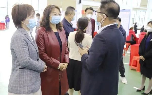 学校党委委员、副校长时秀 梅在招聘会现场与用人单位代表及参会学生亲切交流,详细询问各单位用人需求及毕业生就业意向和求职应聘进展