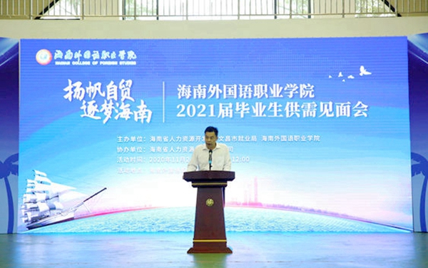 海南省人力资源开发局和文昌市就业局领导到场指导。学院党委副书记黄丽芹、副院长梁松出席开幕式。学院实训就业处处长许环碧主持开幕式。