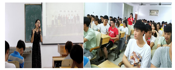 东语系缅甸语教师陈娜,就她今年4月参加学院实训就业处组织到广东有关高校考察学习他们的创新创业经验、走访了解我院在广州、深圳创业成功校友的创业经历所学、所感、所悟,结合系部学生实际,分三场对全体在校学生以“双创与职业发展”为主题的专题讲座。讲座就创新、创业、就业和职业规划等四个方面进行具体讲解。