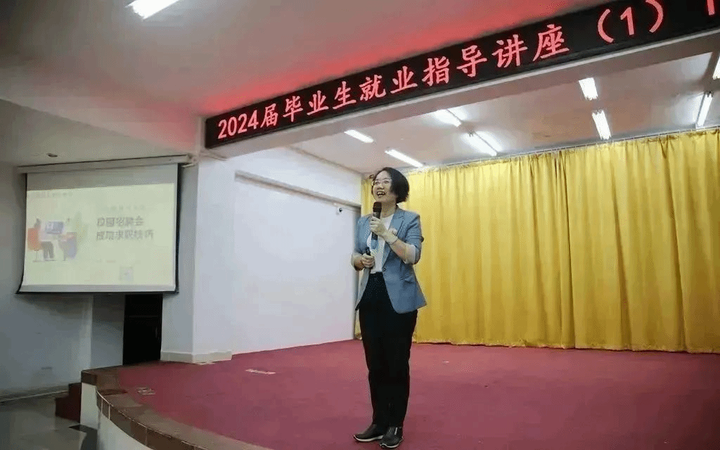 林英燕从如何把握校招机遇、招聘会前精心准备、了解校招企业渠道、招聘会与HR沟通技巧、招聘会的面试礼仪、招聘会后跟进复盘等六大主题展开分享。她指出,校园招聘会是学校和企业为学生提供的资源平台,就业竞争率相对较小。校园招聘会求职成功率大于毕业后自主择业成功率。因此,要把握校招机遇,提前做好面试准备。面试环节是决定是否求职成功的重要环节,她向学生分享如何制作面试简历、什么样的面试简历更能吸引HR的目光以及面试时HR常会问到的问题,包括着装、站姿、坐姿、眼神、表情、握手的面试礼仪,并提出了成功求职的指导性建议。