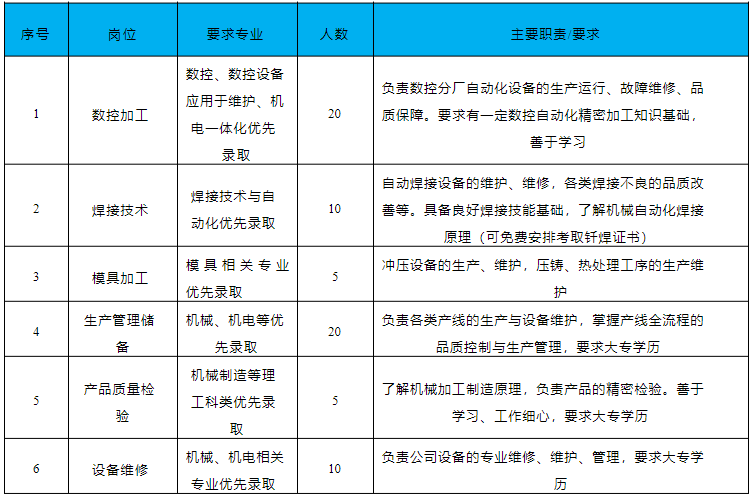 18-25 周岁,大专及以上学历,身体健康、适应能力强,综合素质良好,不限专业。