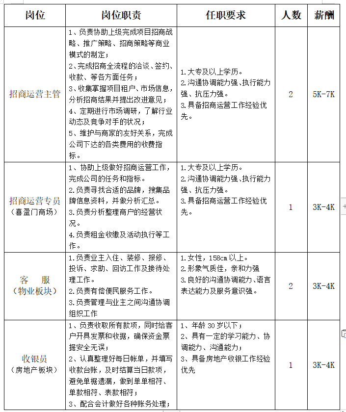 一、招聘岗位
