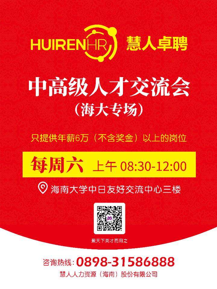 招聘信息 当前位置: 首页 >> 招聘宣讲 >> 招聘信息 >> 正文 慧人人力资源招聘简章 发布日期:2019-03-04 点击: (温馨提示:招聘公司地址仅以本网站为准,请同学们面试时注意核对。) 上一篇:文昌世贸怒放海项目万道地产招聘简章 下一篇:三亚亚龙湾华宇度假酒店&三亚亚龙湾迎宾馆招聘简章