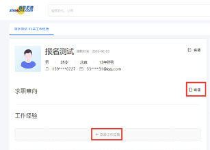(2)点击“编辑”和“添加工作经验”可新增简历内容以及对当前内容进行修改,需尽可能的完善简历;