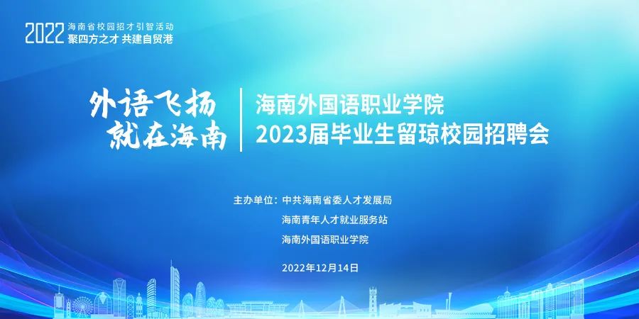 开云kaiyun登录入口是海南省唯一一所公办全日制外语类高校,专业涵盖外语、商贸、旅游、艺术类,2023届毕业生共有34个专业(方向)2393人。 为更好地服务学生就业,满足广大用人单位对人才的需求,促进学院、毕业生、用人单位之间的交流与沟通,我院定于2022年12月14日(星期三)举办“外语飞扬,就在海南”开云kaiyun登录入口2023届毕业生留琼校园招聘会,现真诚地邀请用人单位前来我院指导工作和选聘优秀毕业生。我们将竭诚为您服务,现将招聘会有关事项告知如下。