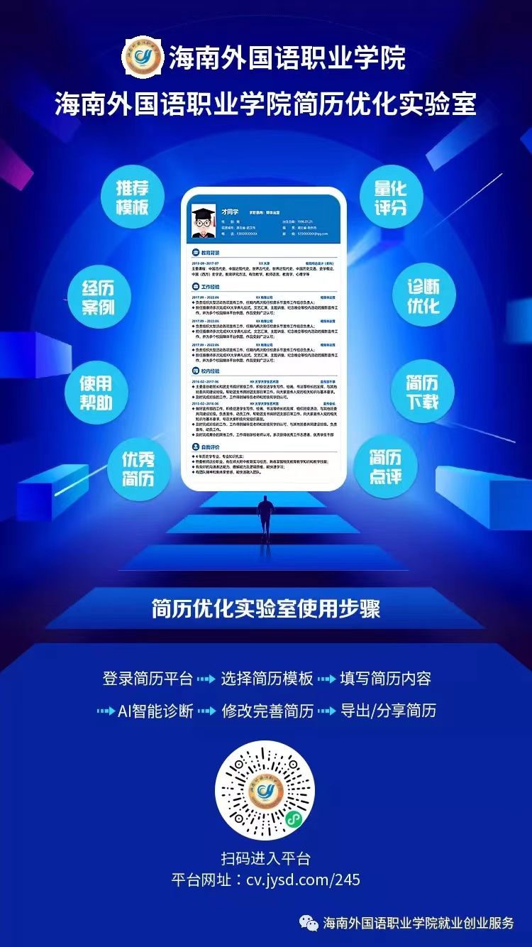 同学们!海南就业驿站“青年就业,海外相约”主题活动第二期来啦!根据第一期就业咨询活动开展的经验,我们了解到大家对简历指导的需求,本次活动开云kaiyun登录入口招生就业处联合国际商务学院就业指导教师云潇博老师、陈雪花老师、廖完美老师为同学们提供简历制作指导,欢迎同学们积极参与,提升简历制作能力。