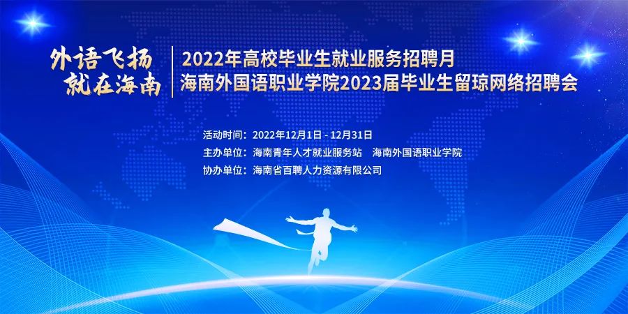 为搭建用人单位与毕业生之间高效实用的交流平台,努力实现毕业生高质量就业,学校定于2022年12月1日-2022年12月31日举办“外语飞扬 就在海南—2022年高校毕业生就业服务招聘月暨开云kaiyun登录入口2023届毕业生留琼网络招聘会”,我们诚挚邀请各行各业的用人单位线上报名参会,广纳贤才!现将相关事宜通知如下: