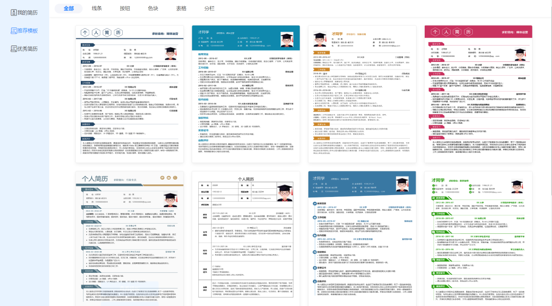 2.简历制作:进入后,点击【新增简历】,选择模板样式后,即可创建自己的简历。