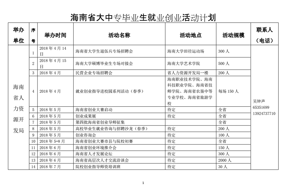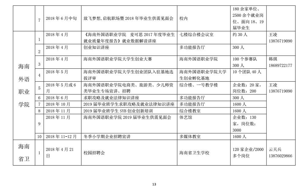 通知公告 当前位置: 首页 >> 通知公告 >> 正文 海南省大中专毕业生就业创业活动计划 发布日期:2018-03-30 点击: 上一篇:2018届毕业生求职创业补贴申请名单公示 下一篇:开云kaiyun登录入口 英语系2018届毕业生、 国际商务系2019届电子商务专业实习生 专场招聘会招聘单位名单汇总