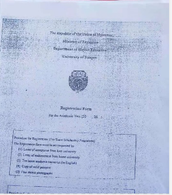 准备好的仰光大学申请材料及大使馆回复