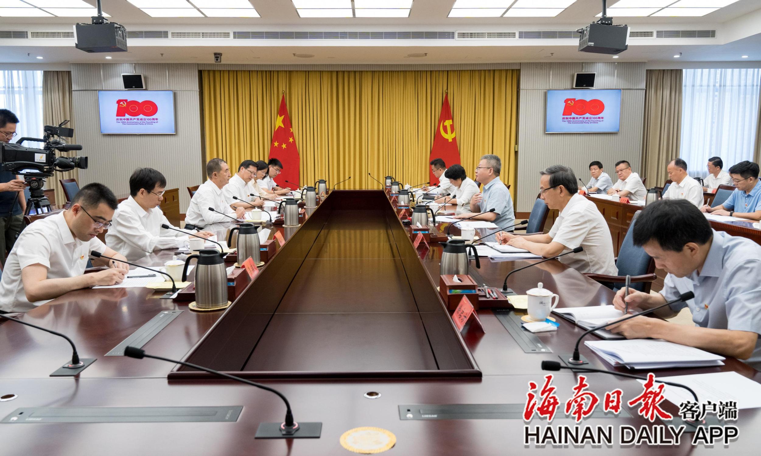 2021年6月16日,党史学习教育中央第七指导组正式进驻海南开展督导指导工作。图为对接会现场。海南日报记者 宋国强 摄