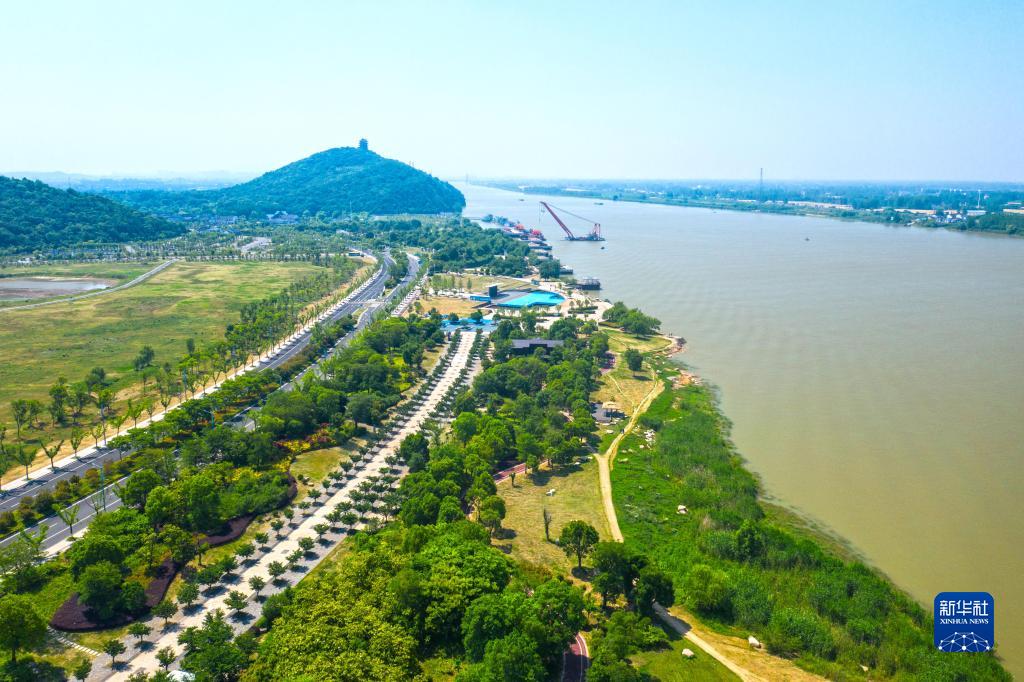 安徽省马鞍山市长江岸线景观带(2022年5月17日摄,无人机照片)。新华社发