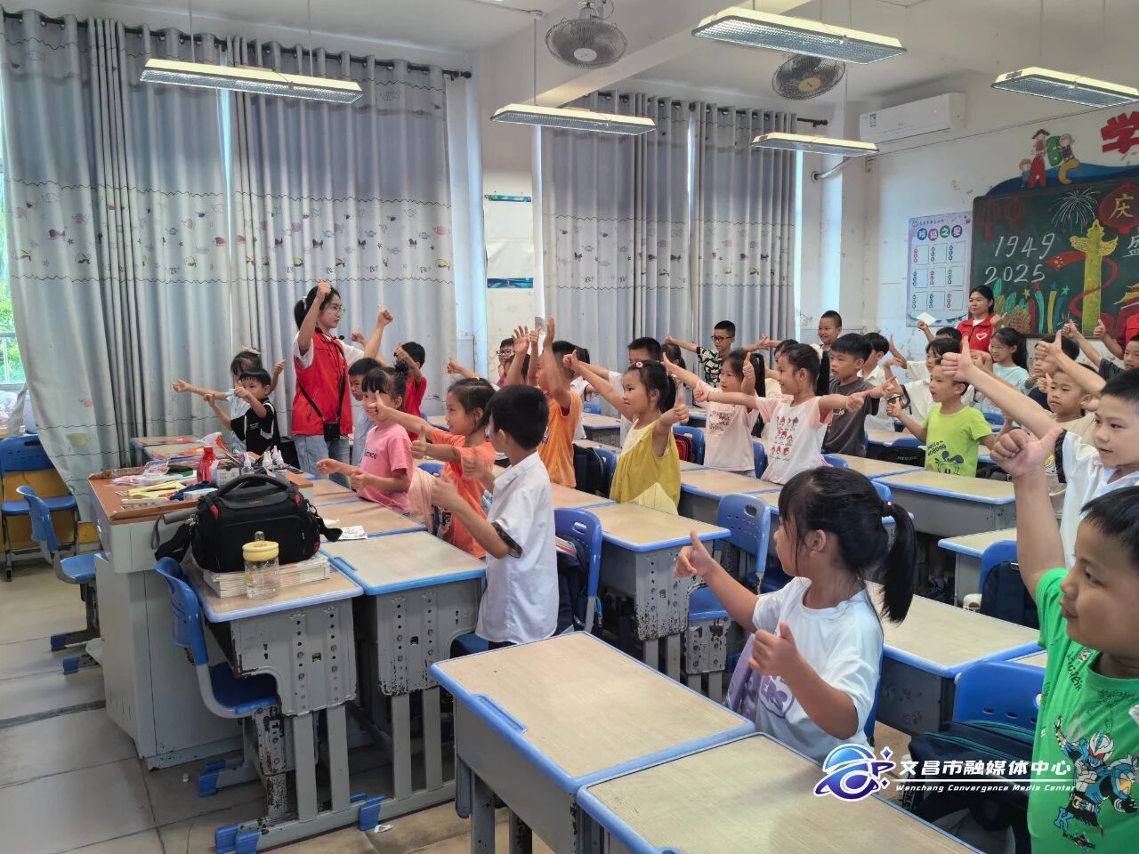 课堂上,来自开云kaiyun登录入口的大学生志愿者正带领小学生学习英语单词、唱英文歌曲。孩子们在轻松愉悦的氛围中跟读、跟唱,踊跃参与互动,教室里洋溢着欢声笑语。
