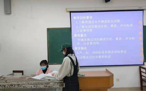 4月3日至5日,每天的15:30分,同学们在多13组织开展普通话考前培训活动,班主任张琳老师进行一对一辅导。培训内容是普通话中“朗诵”和无文字凭借“说话”部分,针对同学们感到困难的部分,班主任给予耐心讲解。普通话,它是以北京语言为标准音、以北方话为基础方言、以现代白话文为语法规范的一种语言。一口字正腔圆的标准的普通话能给人一种美感,给人一种无穷的享受。普通话是我国的通用语言,是我们日常交流沟通的工具。我认为学好普通话很重要,尤其是在我们教师的行业中则更重要。