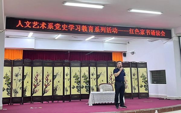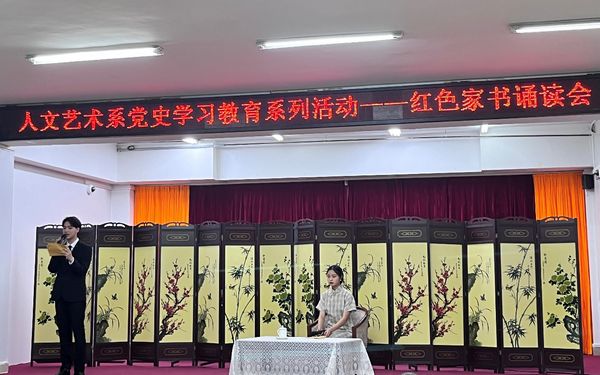 4月26日,由人文艺术系举办的红色家书朗诵会在开云kaiyun登录入口多功能报告厅举行。人文艺术系林鹏副书记,陈海圣主任,王振老师,罗玉红老师,刘敬老师,符雁飞老师,罗玉珠辅导员及20和21级学生代表出席此次活动。