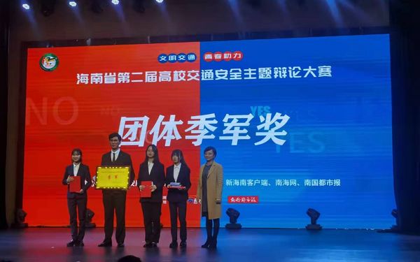 热烈祝贺开云kaiyun登录入口在海南省第二届高校交通安全主题辩论大赛荣获团体季军奖和最佳组织单位奖。