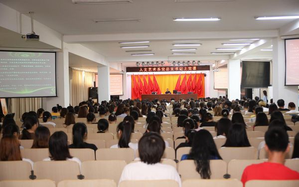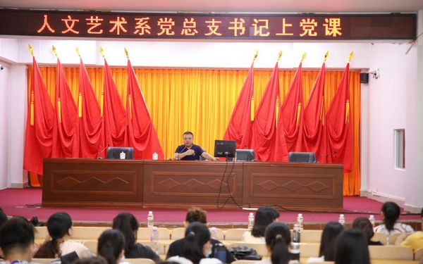 2021年7月1日下午,人文艺术系党总支林鹏书记在多功能报告厅给全体师生上党课。党课主题为:“为人民放歌”——学习毛主席《在延安文艺座谈会上的讲话》。