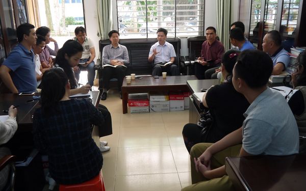 在调研活动中,杨院长首先听取陈海圣主任详细介绍系部师资队伍、学生管理、专业建设、教学场馆等情况以及2018年总体工作思路的汇报,随后与系部教职工亲切交谈,向教研室主任、专业带头人和骨干教师广泛征求意见和建议。调研小组对各教研室主任、教学场馆管理人员等提出的一些教育教学方面的困难问题逐一进行了热烈讨论,研究解决方法,杨院长对我部在管理教职工人数最多、工作繁杂、各种困难重重等情况下,打破传统思路自谋发展的想法予以高度肯定,明确表态对一些教学场馆建设等重大问题将在调研后安排人员进行进一步讨论和可行性评估。