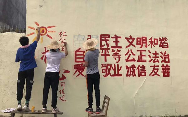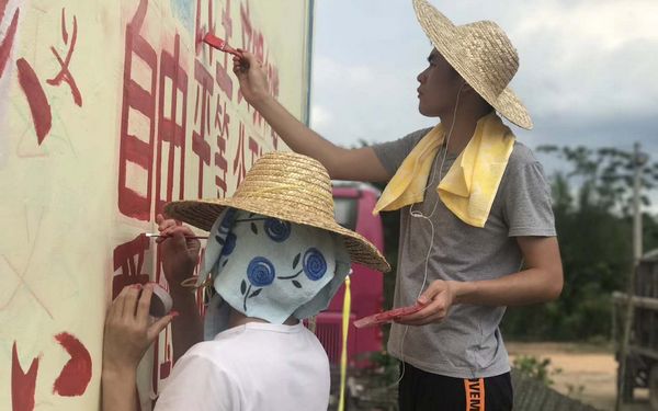 近期,许家维、林紫伊等美术教师带领视觉传播设计与制作专业学生走进定安扶贫点,为扶贫村描绘美丽的图画,为美化乡村作出自己的贡献,他们在烈日下坚持,挥洒的汗水映射出青春闪闪光芒。