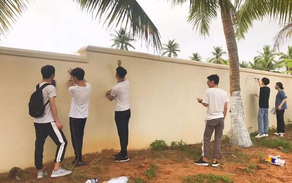文化墙正式进行彩绘,大家集思广益,力求新颖,从调制颜料、勾勒草图、添加色彩,不放过一个细节,专注而投入。他们时而蹲着、时而站着、时而弓着腰,手冻僵了、腿站麻了、大家没有一句怨言,放弃周末休息时间,从早上8点一直忙到下午,天气虽冷,却阻止不了他们狂热的创作激情。