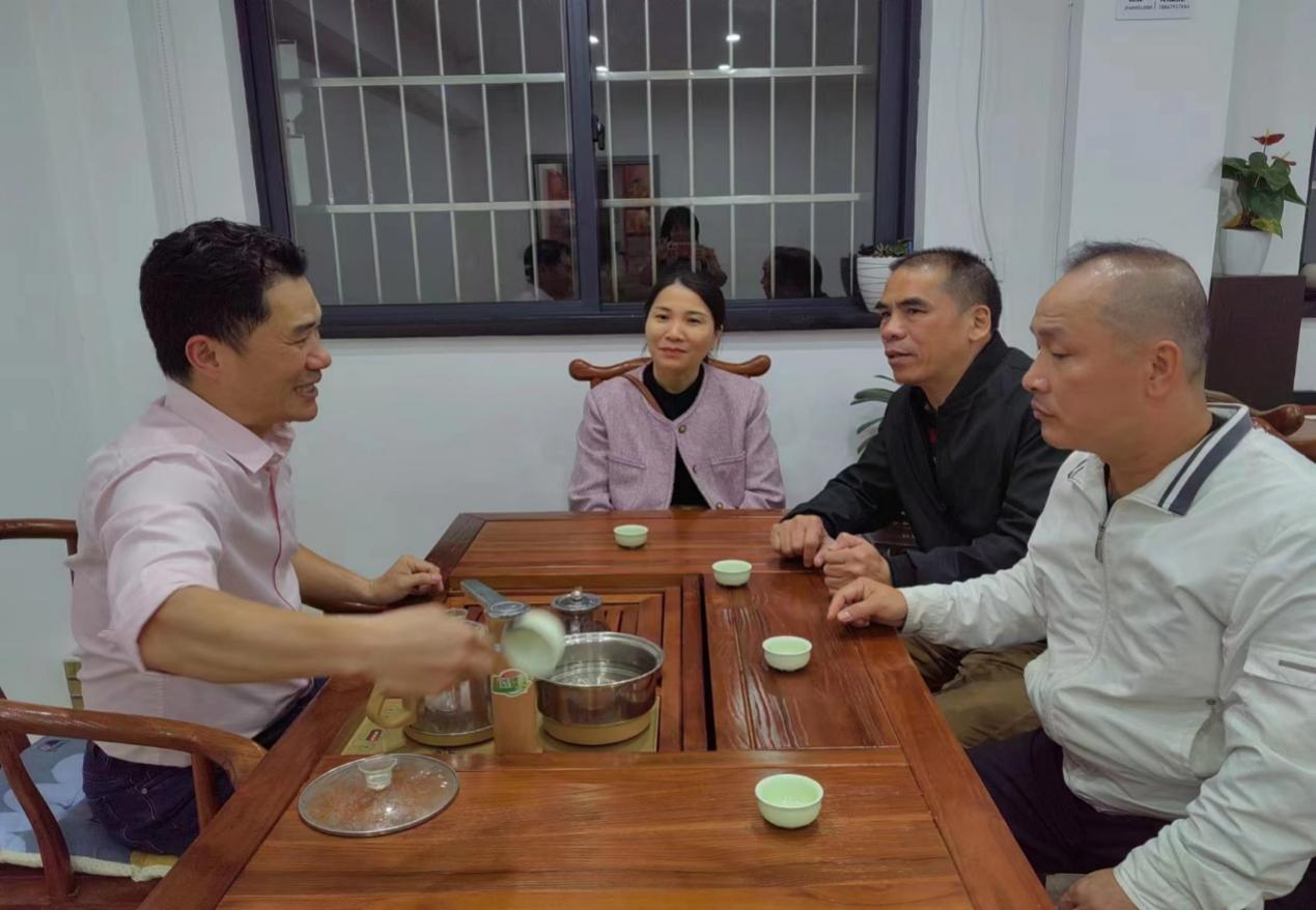 图为访企拓岗的领导、老师和玺匠发展有限公司阮总经理在交流