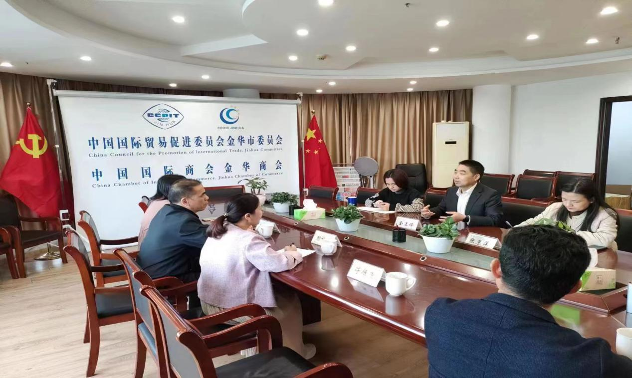 图为人文艺术学院的领导、老师和金华贸促会的金处长等在座谈交流