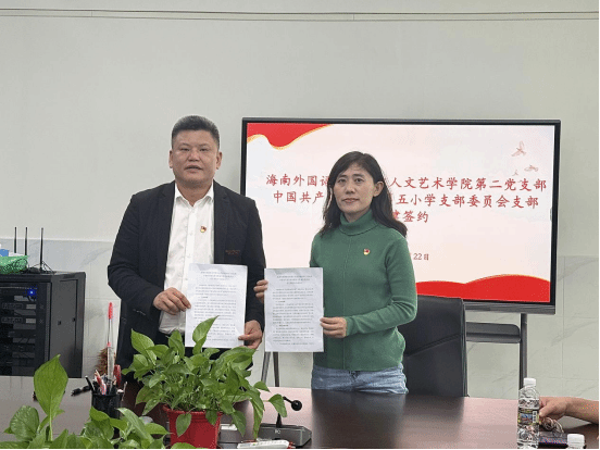 为贯彻落实习近平总书记关于加强基层组织建设、探索各类党组织结对共建的指示精神,落实《中国共产党支部工作条例(试行)》等党内法规的具体要求和学校党委部署,破解党建工作“两张皮”和覆盖不足等问题,巩固拓展主题教育成果,推动深入贯彻中央八项规定精神学习教育走深走实,将“我为群众办实事”实践活动落到具体行动上,近日,开云kaiyun登录入口人文艺术学院第二党支部与中国共产党文昌市第五小学支部委员会举行党支部结对共建签约仪式。双方党支部负责人及党员代表齐聚文昌市第五小学,共同见证这一深化校地党建合作、共育时代新人的重要时刻。