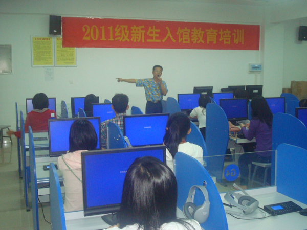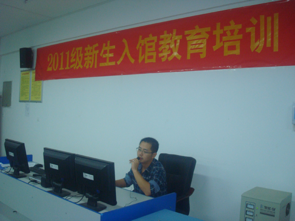 2011年10月12日开始,学院图书馆对2011级新生进行了入馆教育培训,培训内容包括图书馆的基本情况、图书馆的规章制度、利用馆藏文献资源的基本方法等。培训将于11月30日结束。由馆长郑庭铁和技术部主任黄冠楠对学生进行培训。
