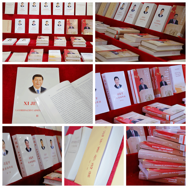 在开展学习贯彻习近平新时代中国特色社会主义思想主题教育之际举办习近平总书记中外系列著作展,正当其时、适逢其势。著作展紧紧围绕学习贯彻习近平新时代中国特色社会主义思想主题教育,集中展示习近平总书记治国理政有关重要著作和系列重要讲话精神,共展有汉语、英语、阿拉伯语、西班牙语、日语、俄语、德语 、法语等90余种多语种纸质版书籍。同时,著作展以瀑布流形式,展示习近平总书记中外系列著作电子书籍,师生可以用手机扫描二维码下载有关书籍具体内容进行保存和阅读。