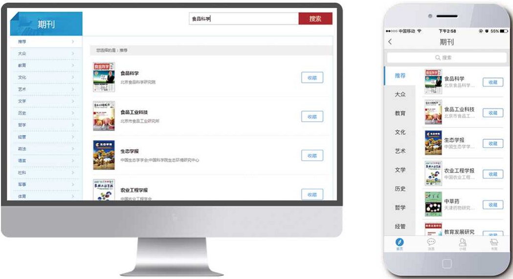 超星集团历经23年积累、18年发力,全力打造面向各级各类用户的期刊知识服务。目前收录国内期刊6600余种,核心期刊超过1300种,独有期刊734种,实现与上亿条外文期刊元数据联合检索。内容涵盖理学、工学、农学、社科、文化、教育、哲学、医学、经管等各学科领域,并囊括各学科的前几名期刊,如排名第一的大气科学、管理学报、食品科学、机械工程学报、软件学报等。超星期刊提供原版阅读、数据库文献检索阅读、富媒体专题汇编阅读及碎片化知识数据阅读等,提供移动、PC全终端服务模式。