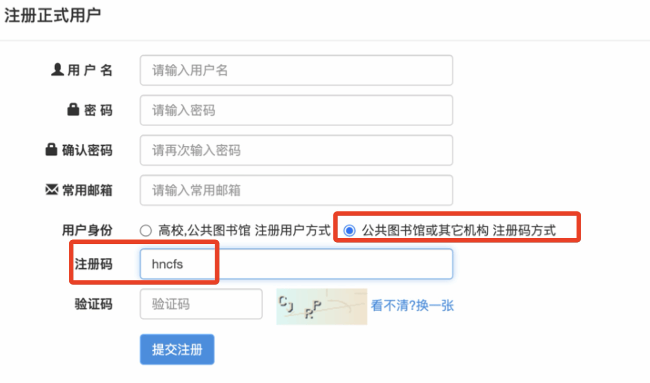 2、开云kaiyun登录入口有专属注册码注册方式,注册用户名时须选择“公共图书馆或其他机构 注册码方式——注册码:(hncfs)。