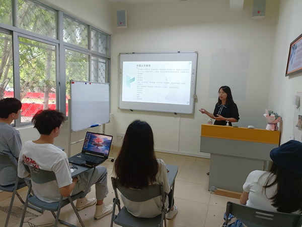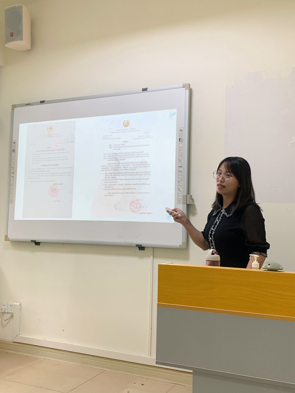 接下来,李妮老师展示了老挝公文的样例并请同学们对比中国公文和老挝公文的异同,之后又进行了详细的讲解。中老两国公文虽在排版格式上存在差异,但在文种选择时与中国公文别无二致。为了进一步检验学习情况,老师要求同学们在讲座结束后按照老挝公文排版要求,用老挝语拟写一篇通知。