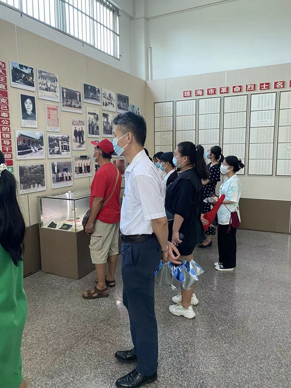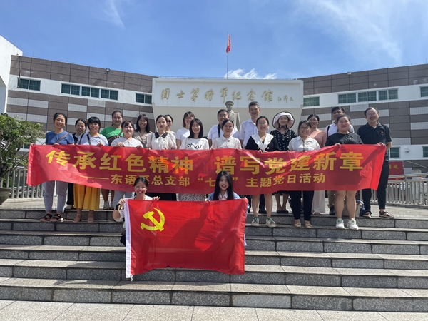 为喜迎中国共产党建党101周年,追寻革命先烈的光辉足迹,探求宝贵的精神财富,汲取重要的力量源泉。2022年7月5日上午,东语系党总支全体师生党员在总支书记王诒奎同志的带领下,来到了海南省爱国主义教育基地——周士第将军纪念馆,开展了以“传承红色精神,谱写党建新章”为主题的七一当日活动。纪念馆前庭正中矗立着周士第将军的全身雕像,基座正面镌刻着杨成武题写的“周士第将军”。馆正面上方镶嵌着江泽民题写的“周士第将军纪念馆”,李鹏、刘华清、张震、迟浩田等为纪念馆题词,中共海南省委、省人民政府为纪念馆立碑文。在纪念馆展厅里,展出周士第将军参加革命活动的照片、文献资料和文物600多件,形象、生动地反映了周士第的生平和历史功绩。在王书记的带领下,同志们走进纪念馆。眼前的一件件展品,一个个故事,让党员同志们身临其境的了解到那个艰难险阻,让人心生敬意的历史。每一个展厅所展示的一个个可歌可泣的故事,追忆一段段恢弘悠远的历史,一件件历史文物如同一架时空穿梭机,将历史画卷重新铺展开来,带大家真切地了解当年艰难的革命历程,切身感受了那段艰苦的光辉岁月。党员同志皆深受震撼,感慨颇丰。