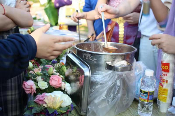 华灯初上,入夜渐微凉,绿茵的草地依旧美丽如初,当天的美食活动即将结束,可是美味还在舌尖萦绕,让人久久不能忘怀。无论是马来西亚的娘惹糕,或者泰国的木瓜沙拉、奶茶,或者越南春卷,又或是缅甸的茶叶沙拉等等,都让我们了解到不同国度美食文化的差异,并且尝到了不同的美味。
