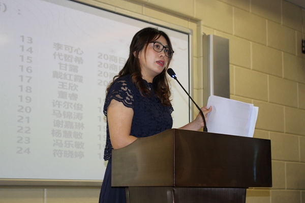 演讲结束后,由外教中山老师从发音、礼仪、内容等方面为大家做了细致的点评。中山老师担任两个专业学生的日语会话课教学,深受学生喜爱。她指出大家在演讲中还是有个别发音的错误,她告诉大家如何缓解上台紧张的情绪,还鼓励选手们,只要对自己有信心,坚持练习,就能取得让自己满意的成绩。中山老师特别强调一点,此次很多学生选择“世界に紹介したい中国文化”这个题目时,如果要想得高分,首先必须要讲一个和自己切身有关联的中国文化才能讲的生动有内涵。比如,19商日2班冯乐敏同学,她从高中开始学过3年的书法,所以她介绍的是与中国书法有关的内容,深得评委们的认可。
