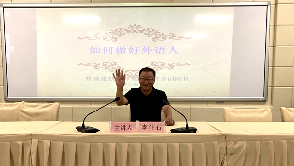2021年4月27日下午15:00-16:30,在AE101教室,东语系邀请原福建师范大学福清分校外国语学院常务副院长李斗石教授为师生做了题为《如何做好外语人》的精彩讲座。讲座由东语系主任郭艳萍教授主持,杨学前副院长、东语系部分教师和日韩语专业40余名学生聆听了此次讲座。