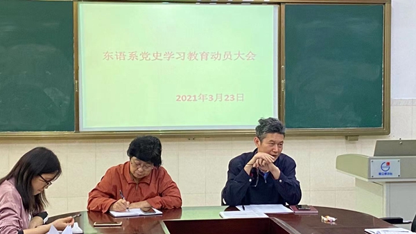 3月23日,东语系在系会议室召开党史学习教育动员会,安排部署学院党史学习教育工作,动员全体党员同志扎实推动党史学习教育和社会实践活动。