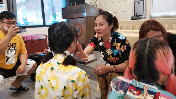 首先,大家通过观看“宋干节”活动的相关视频了解到“宋干节”是东南亚4国的新年,还要进行泼水活动。泼水不仅是庆祝,还会以此纯净的水去除邪恶、驱除疾病,祈福健康!幸福!快乐!让各专业的师生又一次感受到了东南亚异国的民俗与文化。