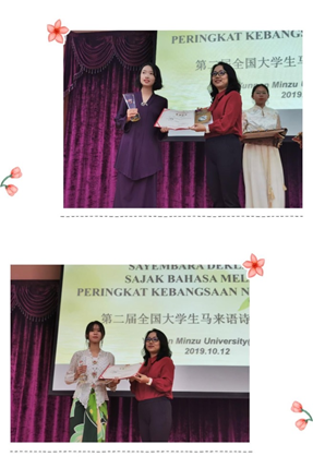 马来西亚语专业17级、18级学生首次参加“第二届全国大学生马来语诗歌朗诵比赛”分别荣获三等奖