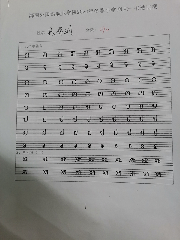 在冬季小学期活动期间,为了激发各专业外语学习同学们的学习兴趣,培养良好的书写习惯,打好外语书写基础,各专业分别举办了以班级为单位的一年级全员参加的外语书法比赛,评委由专业中外教师担任。