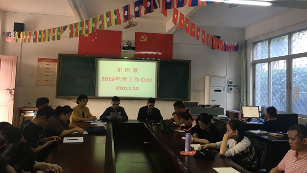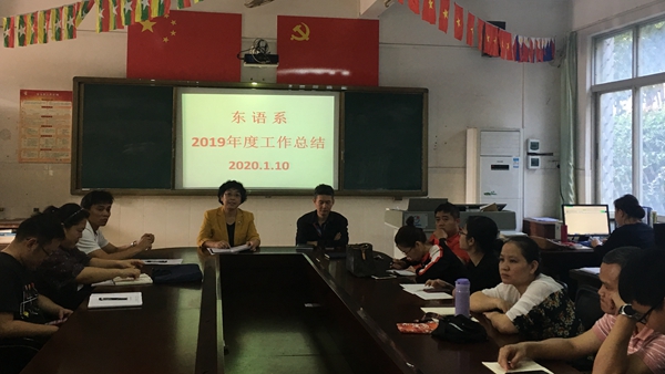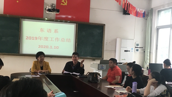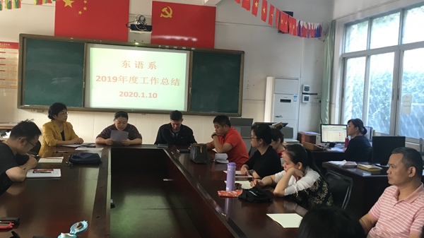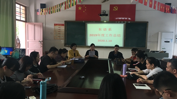 2020年1月10日上午,东语系召开2019年度工作总结大会,本次会议由系主任郭艳萍教授主持,东语系全体教职工参加。