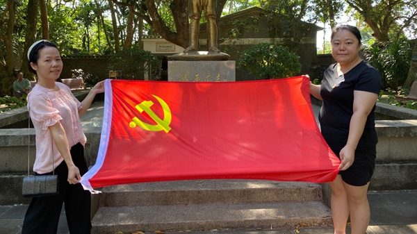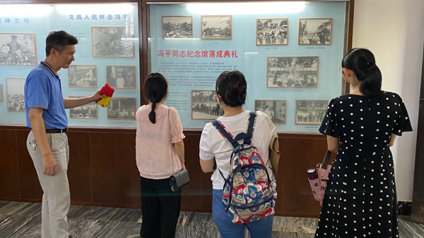 7月7日,在党总支部书记王诒奎的带领下,全体教师党员来到文昌市东路镇冯平烈士纪念馆参观学习,瞻仰老一辈革命家的遗迹、重温党的历史。冯平烈士纪念馆里绿树成荫,在庭院中身穿戎装的冯平全身铜像的注视下,各位党员同志郑重地迈入青砖牌坊式样的大门,追思烈士往日的风采。